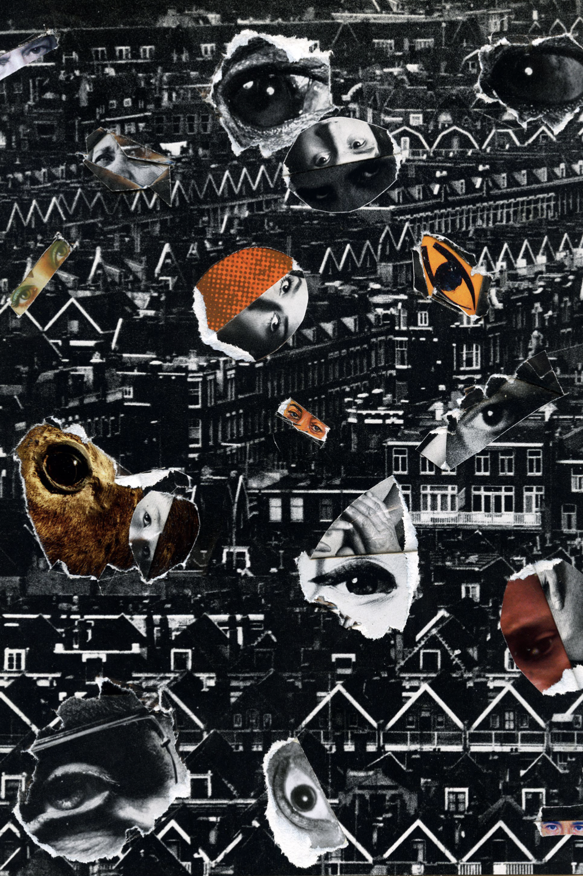 Techniques mixtes : photos numériques et incursions plastiques (découpages, collages de revues, différents papiers).